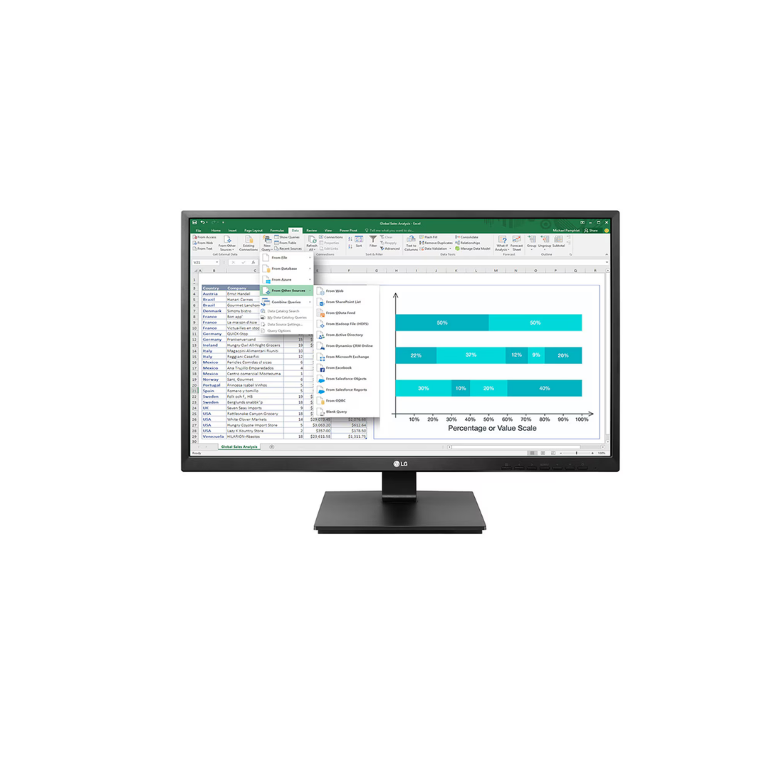 O monitor LG 24BN650U de 24 polegadas oferece excelente qualidade de imagem e recursos ideais para ambientes profissionais e home office. Sua tela IPS Full HD proporciona cores mais fiéis, maior nitidez e amplo ângulo de visão de 178°, garantindo ótima visualização de diferentes posições.